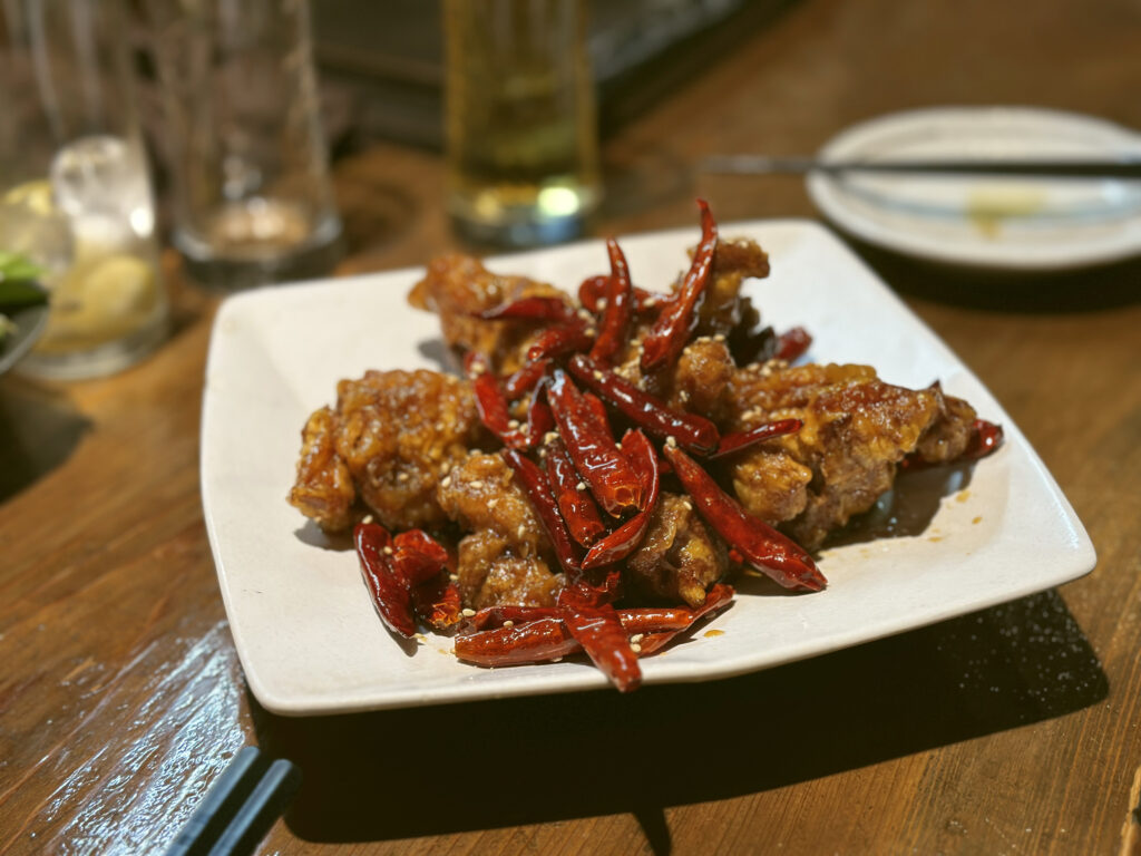 Assaggiamo anche il pollo al peperoncino rosso, il cui sapore ricorda il peperone crusco della Basilicata. Infine, il green onion salt crispy chicken, che però di crispy non ha nulla.